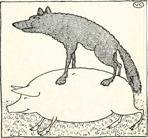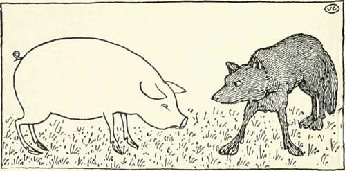Potem je Å¡el naprej, Å¡e vedno laÄen, in Äez Äas opazil pujsa, ki mu je prihajal naproti. Ko sta se sreÄala, je rekel: "Pujs, pojedel te bom!"
